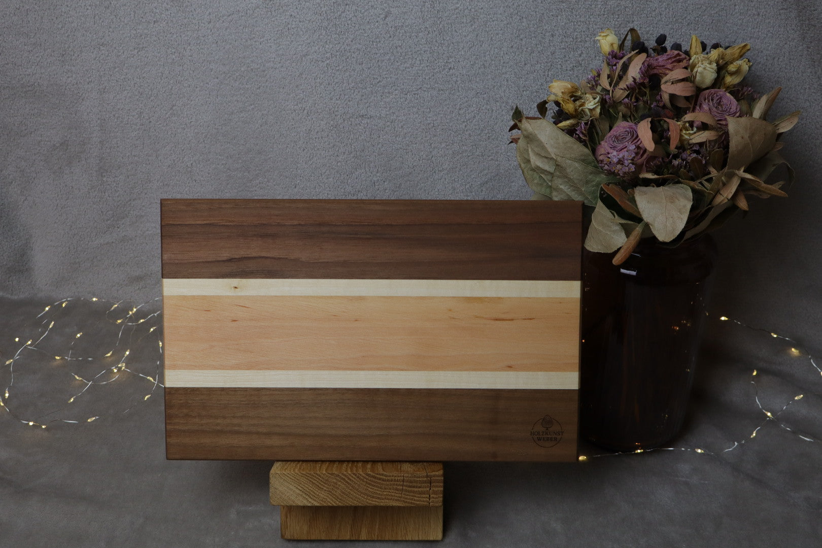 Hochwertiges Jausenbrettchen aus Nuss/Ahorn und Erle.